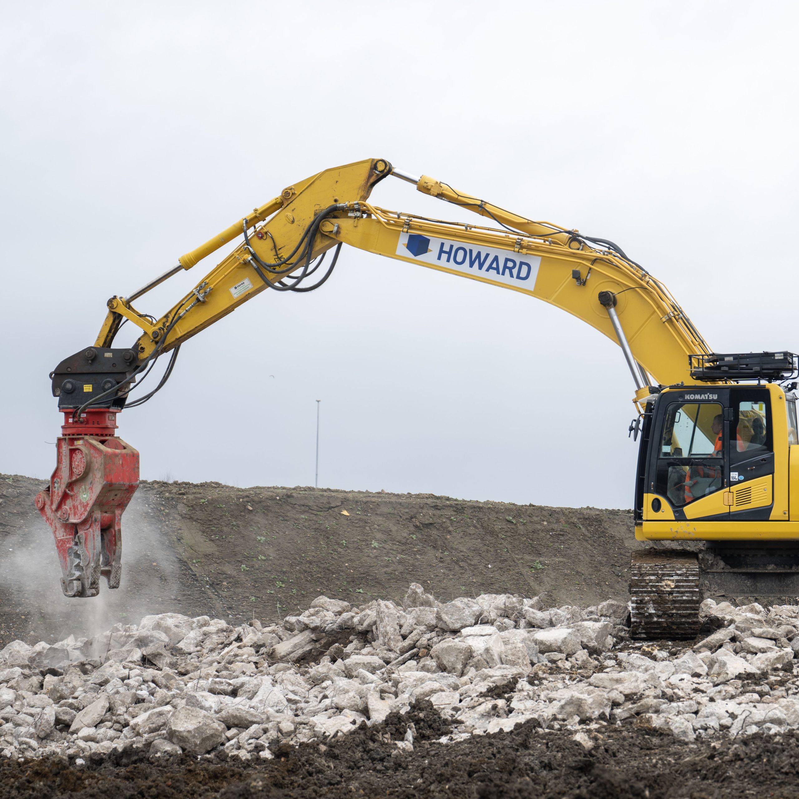 Craig Coleman is Plant Manager for the Howard Group of Companies and takes up the story. “We have won a contract to clear a large former industrial site in Leeds to make it ready for future development. The largely overgrown site was once home to a small power station which had been demolished several years ago. Whilst the buildings had been cleared, there were thousands of metres of reinforced concrete left in the ground which we have been tasked with clearing. We thought about possibly sub-contracting out the removal works but looking at the timescales and costs, we decided to keep it inhouse and undertake the work ourselves.”